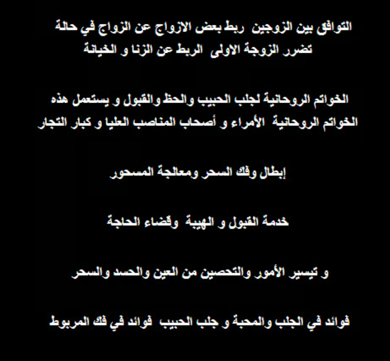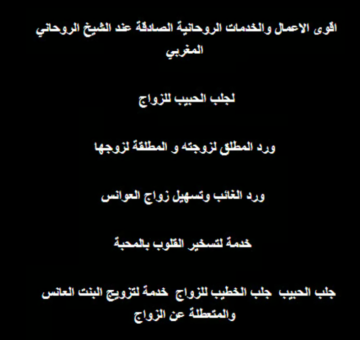 يقدم خدمات روحانية عالية الجودة و بصدق و أمانة و خدماتنا متأصلة بالعلم الروحاني الاصيل الموروث عن الأباء و الاجداد و لدينا خبرة طويلة في بلدان عربية وخليجية واوروبية